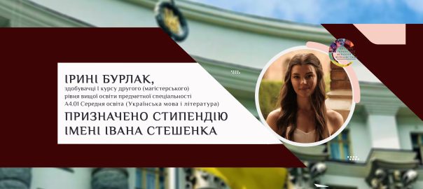 Студентка Ірина Бурлак отримуватиме академічну стипендію імені Івана Стешенка