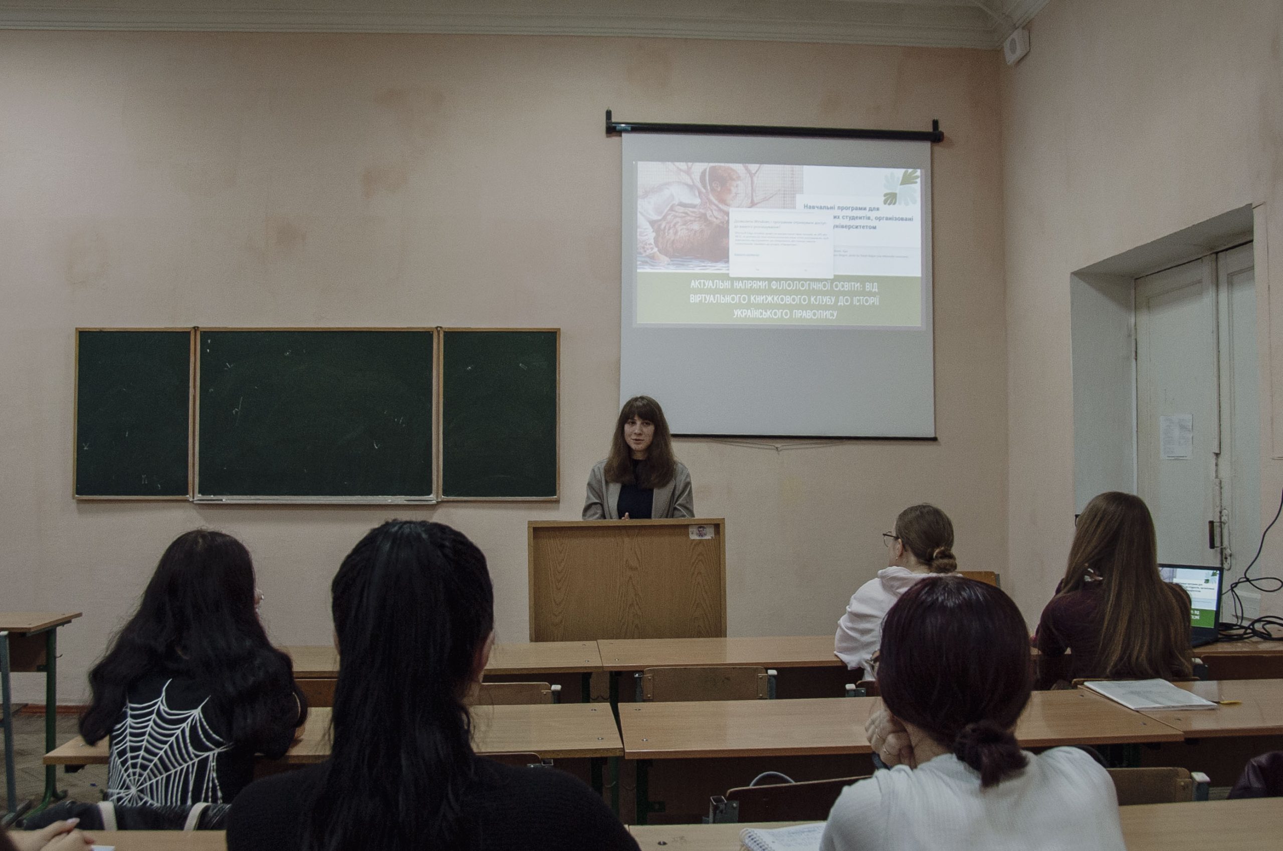 12 вересня 2025 року в навчально-науковому інституті української філології та журналістики відбулася зустріч здобувачів першого (бакалаврського) рівня вищої освіти спеціальностей B11 (за спеціалізаціями) спеціалізацією B11.01 Українська мова та література, 014 Середня освіта (за предметними спеціальностями) предметною спеціальністю 014.01 Середня освіта (Українська мова і література) з Вікторією Компанієць, здобувачкою другого (магістерського) рівня вищої освіти спеціальності 035 Філологія спеціалізації 035.01 Українська мова та література. Вікторія успішно завершила програму внутрішньої академічної мобільності в межах міжнародного проєкту «Онлайнові курси з цифрової української філології» Єнського університету імені Фрідріха Шиллера, DAAD «Цифрова Україна» та Львівського національного університету імені Івана Франка.