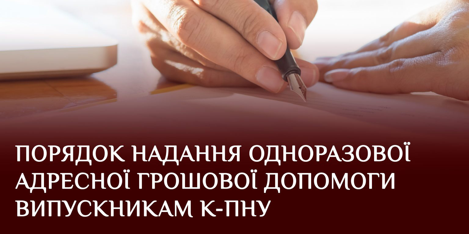 Відповідно до постанови Кабінету Міністрів України від 26 вересня 2006 року № 1361 «Про надання одноразової адресної грошової допомоги деяким категоріям випускників закладів вищої освіти» та Наказу Міністерства освіта і науки України від 19.12.2019 року № 1588 «Про затвердження Порядку надання одноразової адресної грошової допомоги деяким категоріям випускників закладів вищої освіти» визначено механізм надання одноразової адресної грошової допомоги в п’ятикратному розмірі прожиткового мінімуму випускникам закладів вищої освіти денної форми навчання, які здобували освіту за державним замовленням у державних і комунальних закладах вищої освіти незалежно від підпорядкування, здобули освітньо-кваліфікаційний рівень молодшого спеціаліста, ступінь фахового молодшого бакалавра, молодшого бакалавра, бакалавра або магістра зі спеціальностей галузі знань «01 Освіта/Педагогіка» або ступінь бакалавра, магістра за іншою спеціальністю і галуззю знань та уклали на термін не менш як три роки договір про роботу на посадах педагогічних працівників у закладах загальної середньої або професійної (професійно-технічної) освіти, визначених органами управління освітою.