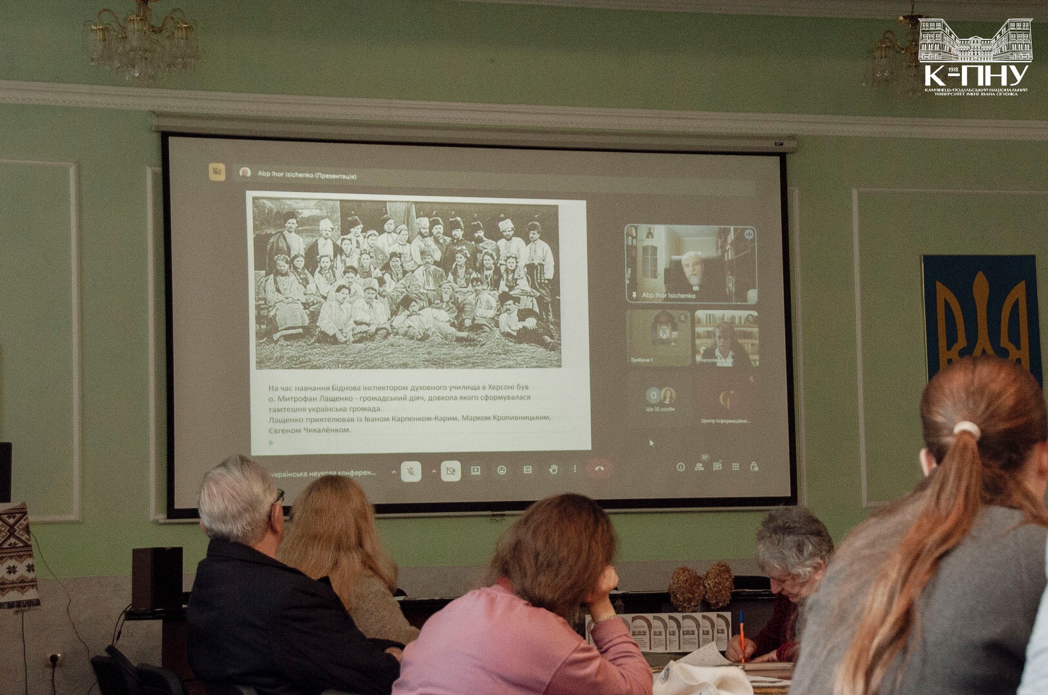 До наукової дискусії в онлайновому обговоренні долучилися доктор історичних наук, професор, академік Національної академії наук вищої освіти України Анатолій Філінюк, кандидат філологічних наук, доцент Інна Онікієнко (Криворізький державний педагогічний університет), кандидат філологічних наук, професор Олена Олексенко (Харківський національний педагогічний університет імені Г.С. Сковороди), доктор філологічних наук, професор Тетяна Осіпова (Харківський національний педагогічний університет імені Г.С. Сковороди), доктор філологічних наук, професор Ірина Жиленко (Сумський державний університет), голова Кам’янець-Подільського товариства «Просвіта» ім. Тараса Шевченка Славко Полятинчук.