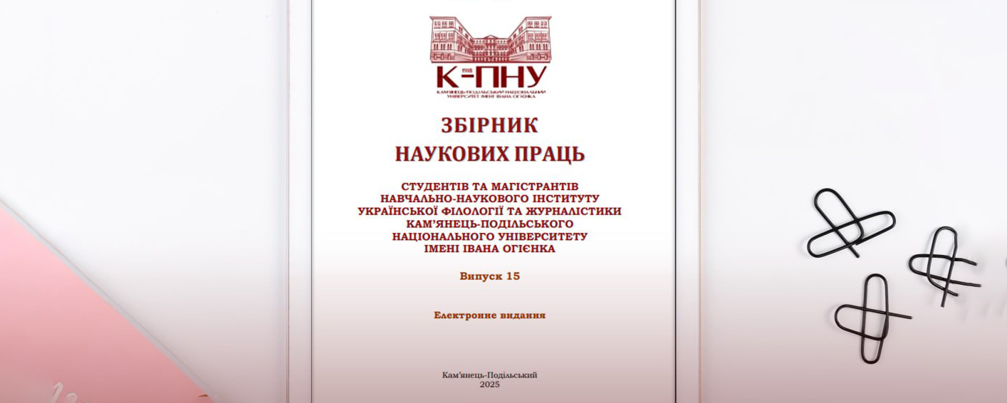 Опубліковано п’ятнадцятий випуск «Збірника наукових праць студентів та магістрантів навчально-наукового інституту української філології та журналістики». У науковому виданні вміщено доповіді, виголошені на ІV Всеукраїнській науковій конференції здобувачів вищої освіти «Нові парадигми сучасної філології», яка відбулася 7 листопада 2025 року в Кам’янець-Подільському національному університеті імені Івана Огієнка.